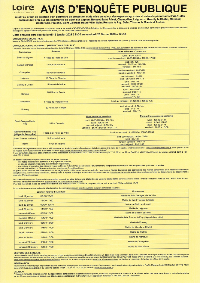 Enquête publique PAEN DES COTEAUX DU FOREZ