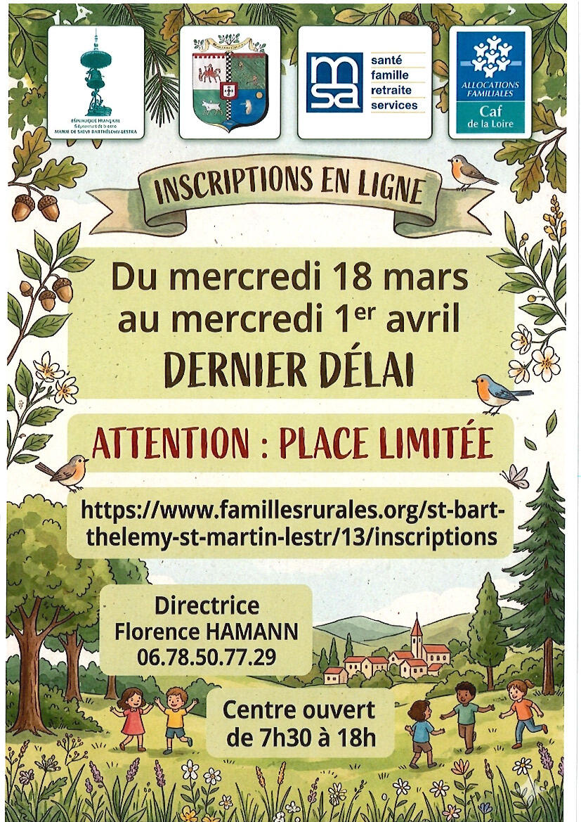 Inscriptions centre de loisirs AVRIL 2026