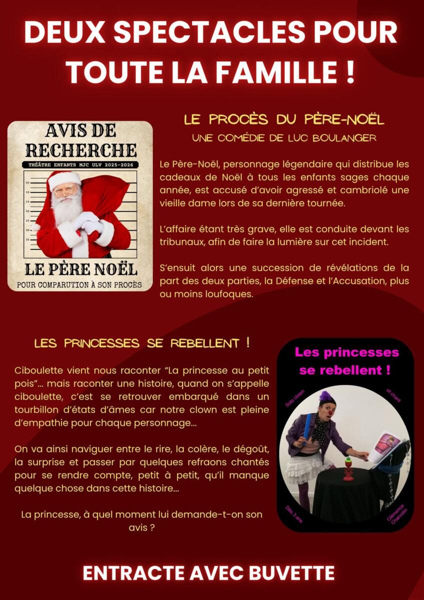 Découvrez nos jeunes comédiens dans une pièce de Luc Boulanger : "Le procès du Père-Noël". Une comédie aux révélations surprenantes avec des personnages hauts en couleur !