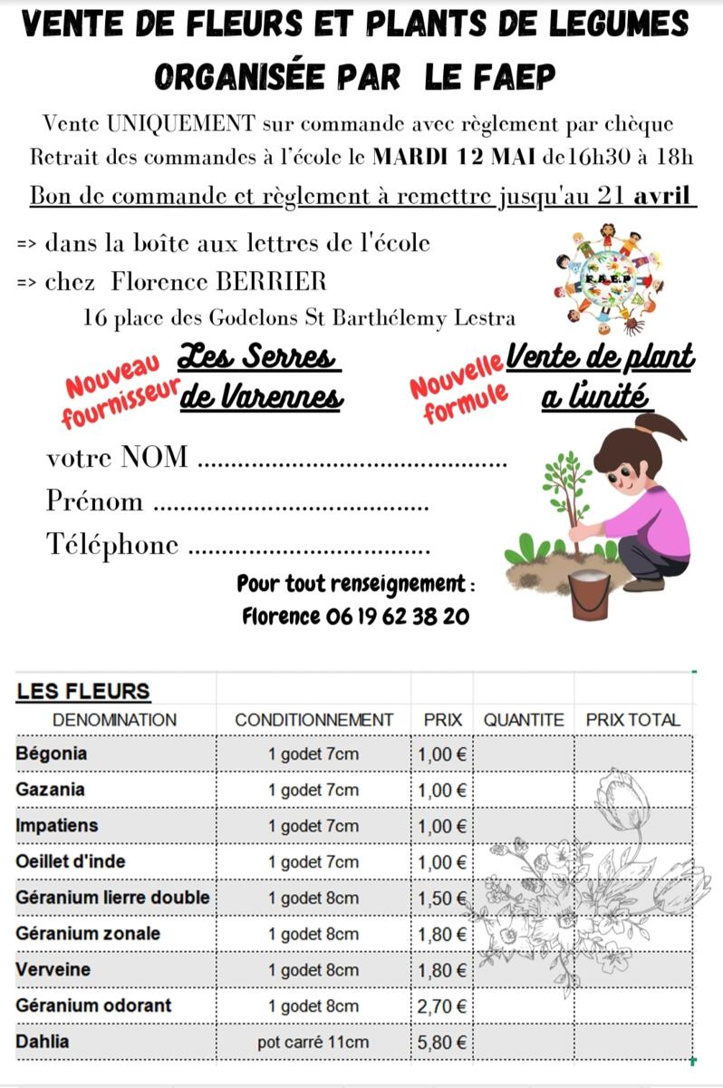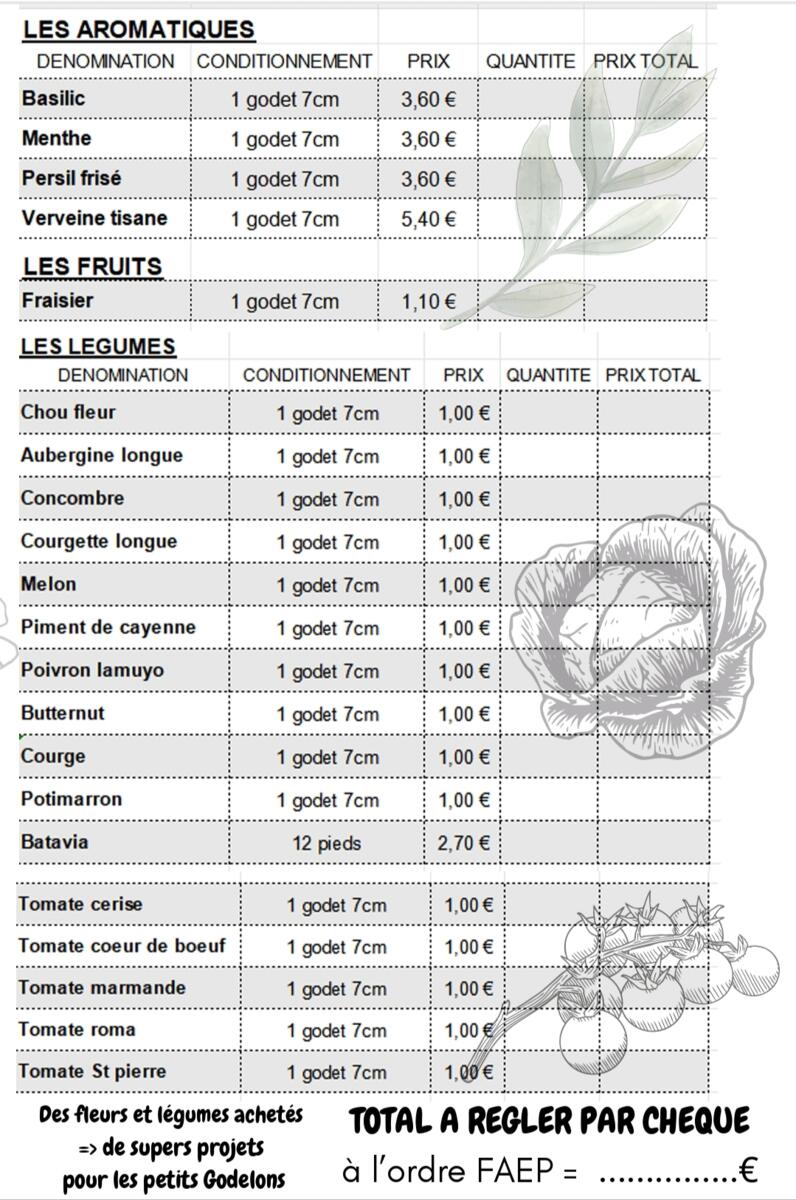 Le FAEP organise sa vente de plants et de fleurs le mardi 12 mai !