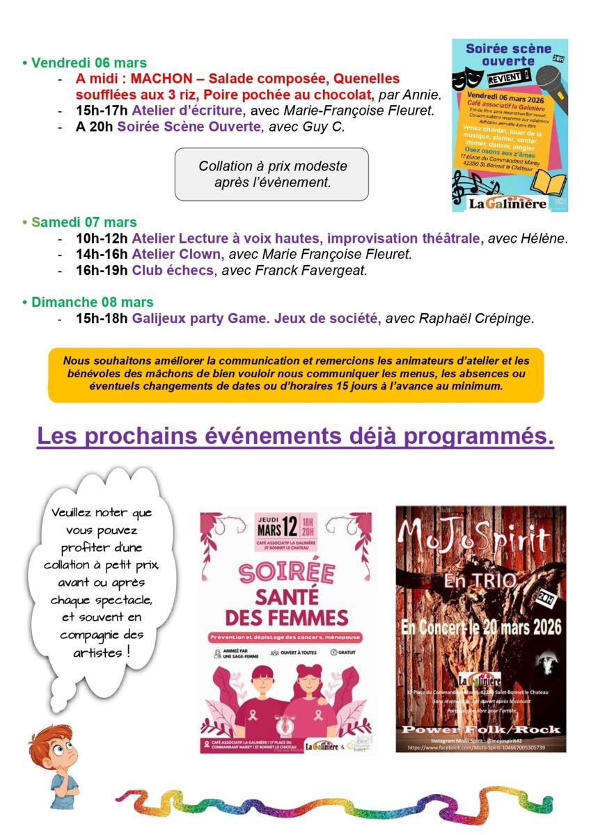 Accueil / Actualités / Programme de la semaine du 2 au 8 mars 2026