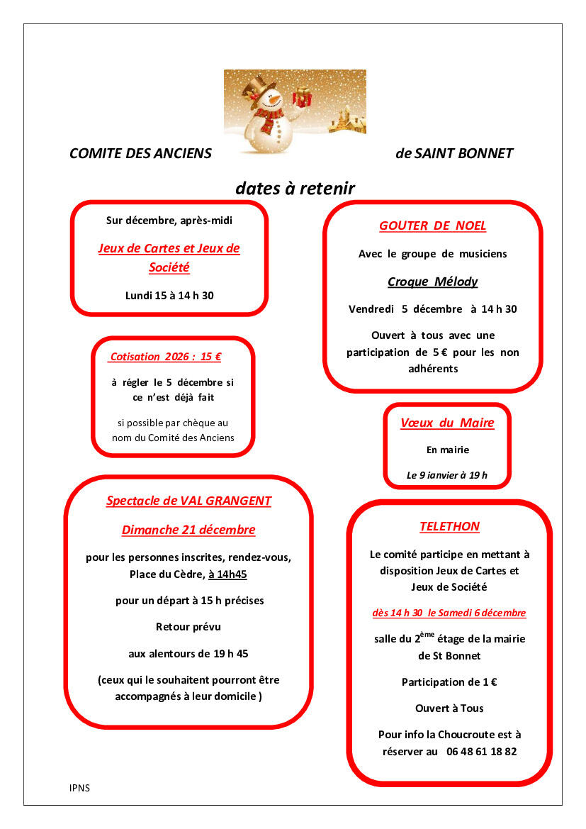 🎄✨ Animations du Comité des Anciens ! ✨ 03/12/2025 Découvrez le programme des animations du Comité des Anciens:
