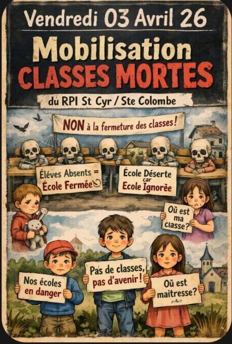 Pour manifester leur mécontentement sur le projet de fermeture de la 3ème classe de notre RPI, les parents lancent une opération "classes mortes", journée durant laquelle les enfants sont invités à ne pas venir à l'école.