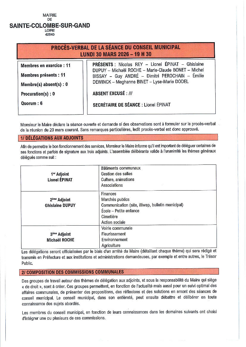 PROCÈS-VERBAL CONSEIL MUNICIPAL DU 30 MARS 2026