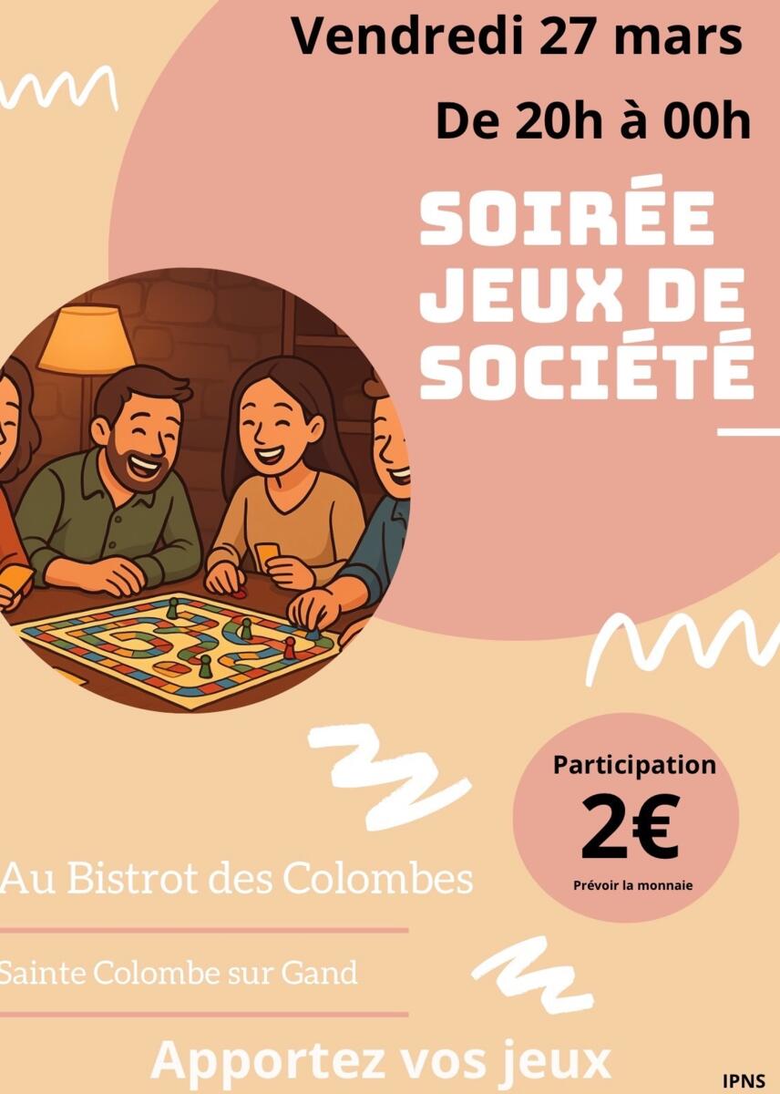 Rappel : Venez jouer demain soir 26/03/2026 Venez nombreux : Reprise des soirées jeux au Bistrot des Colombes : Source : Mairie de Sainte-Colombe-sur-Gand