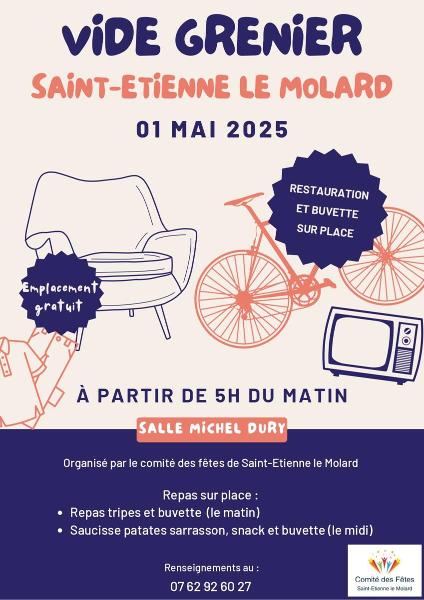 Le comité des fêtes organise un vide grenier le 1er mai 2025 à partir de 5h.