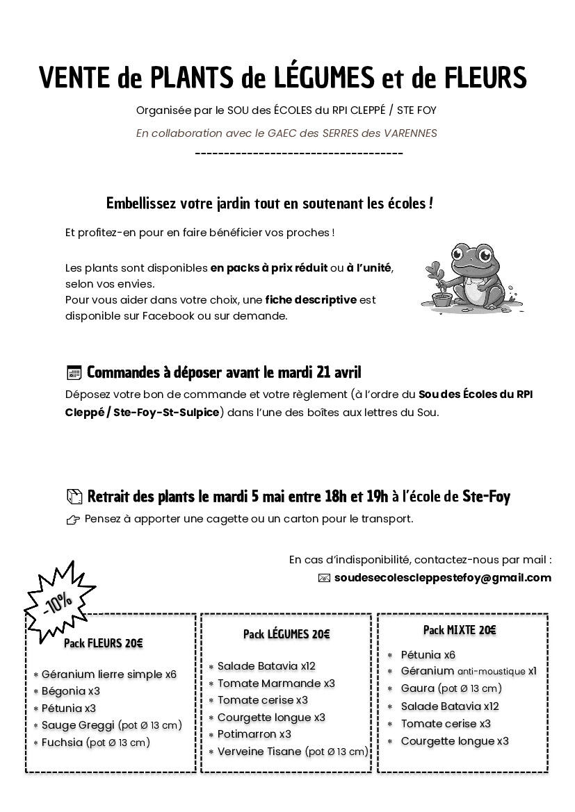 Vente de plants (fleurs, légumes) du Sou des Ecoles