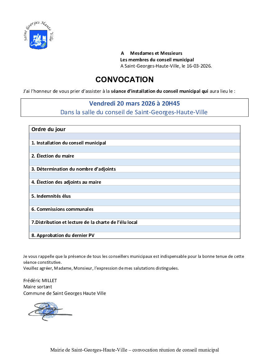 Installation conseil municipal 20/03/2026 conseil municipal Source : Mairie de Saint-Georges-Haute-ville