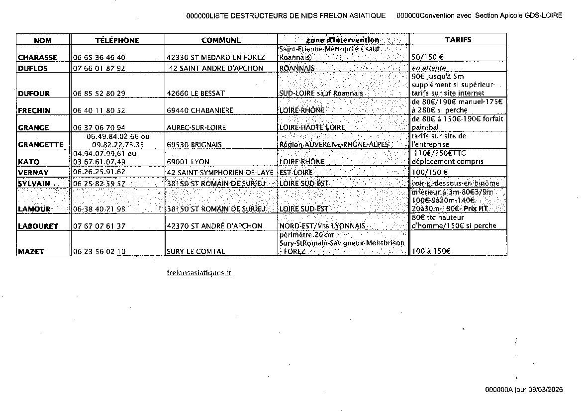 Vous trouverez en pièce jointe le plan de piégeage 2026 et la liste des personnes pouvant intervenir pour une destruction de nid.