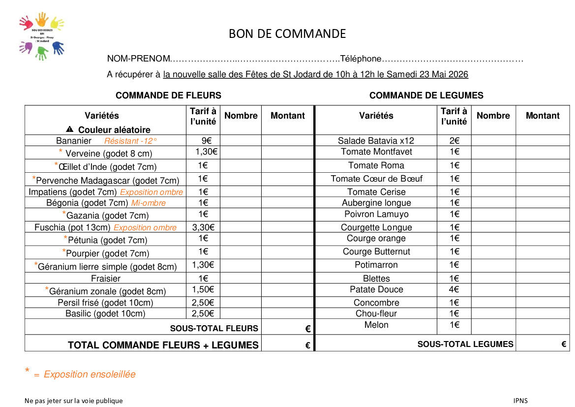 Votre mairie / Actualités / Vente de plants sou des écoles