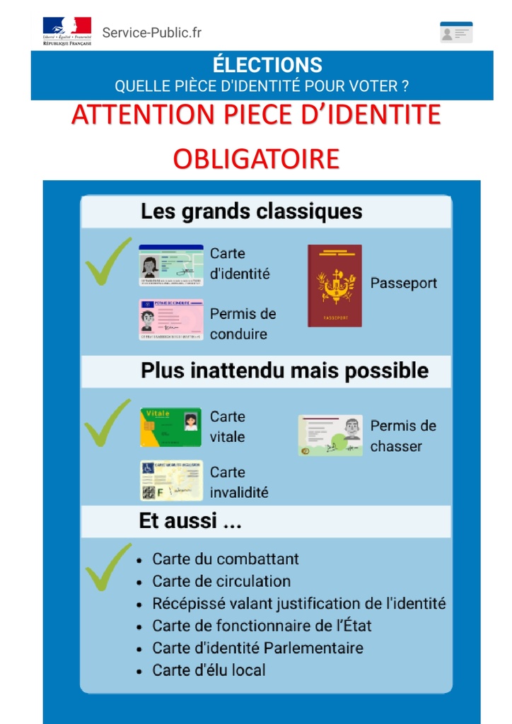 Les électeurs sont invités à se présenter munis d'une pièce d'identité.