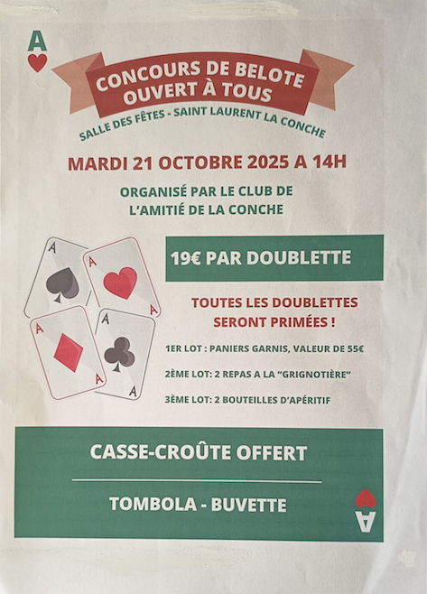 ♦️♠️CONCOURS BELOTE DU CLUB DE L'AMITIÉ DE LA CONCHE