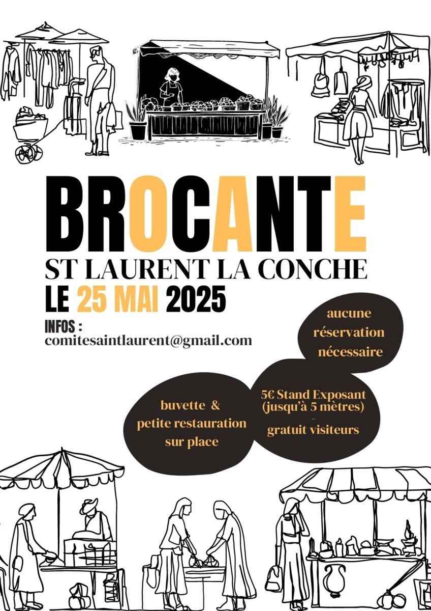 BROCANTE SAINT-LAURENT-LA-CONCHE LE 25 MAI 14/05/2025 LE COMITÉ DES FÊTES DE ST-LAURENT ORGANISE SA TRADITIONNELLE BROCANTE LE 25 MAI.