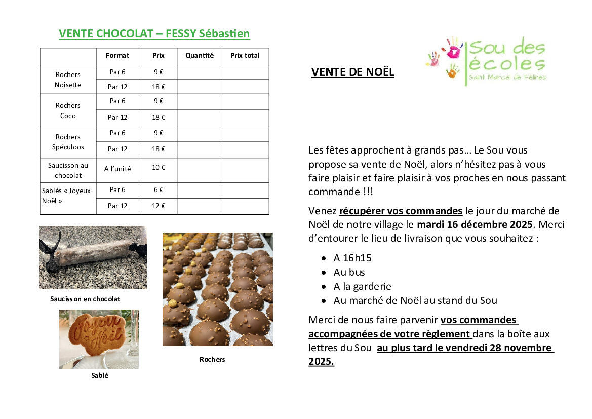 RAPPEL : VENTE DE NOËL DU SOU DES ECOLES