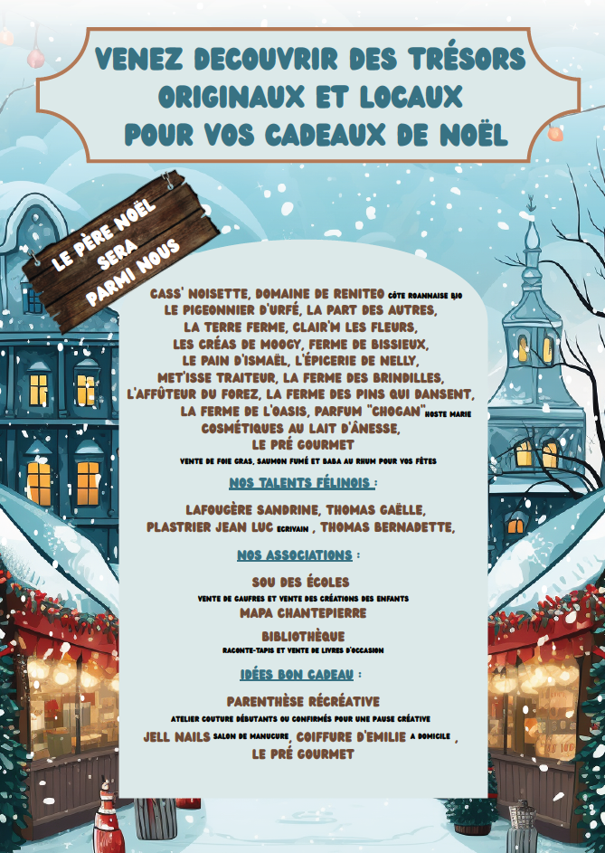 Marché de Noël 02/12/2025 RDV mardi 16 décembre à partir de 16h00 sur la Place du village pour notre marché de Noël.