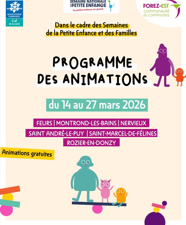 👉 Découvrez le programme des animations dédies à la Petite Enfance et aux Familles du 14 au 27 mars 2026 sur tout le territoire de Forez - Est : Semaines de la petite enfance et des familles - Forez Est
