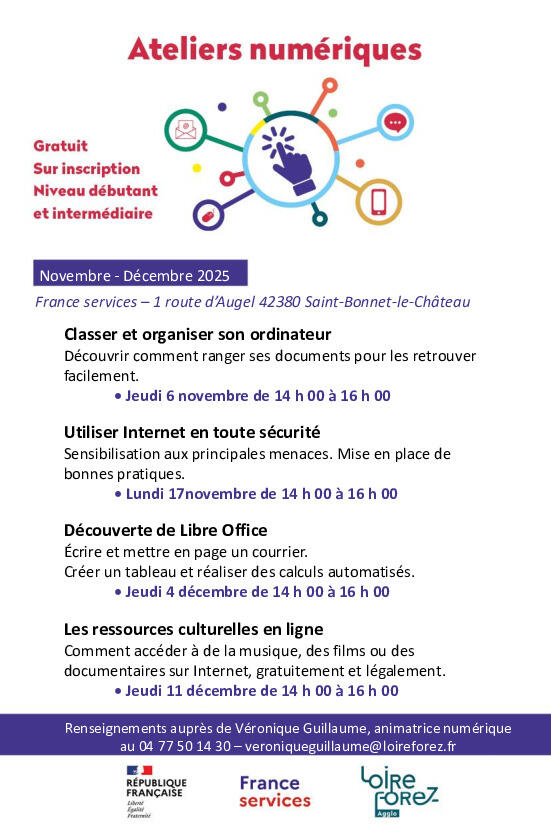FRANCE SERVICES - ATELIERS NUMÉRIQUES A ST BONNET LE CHATEAU