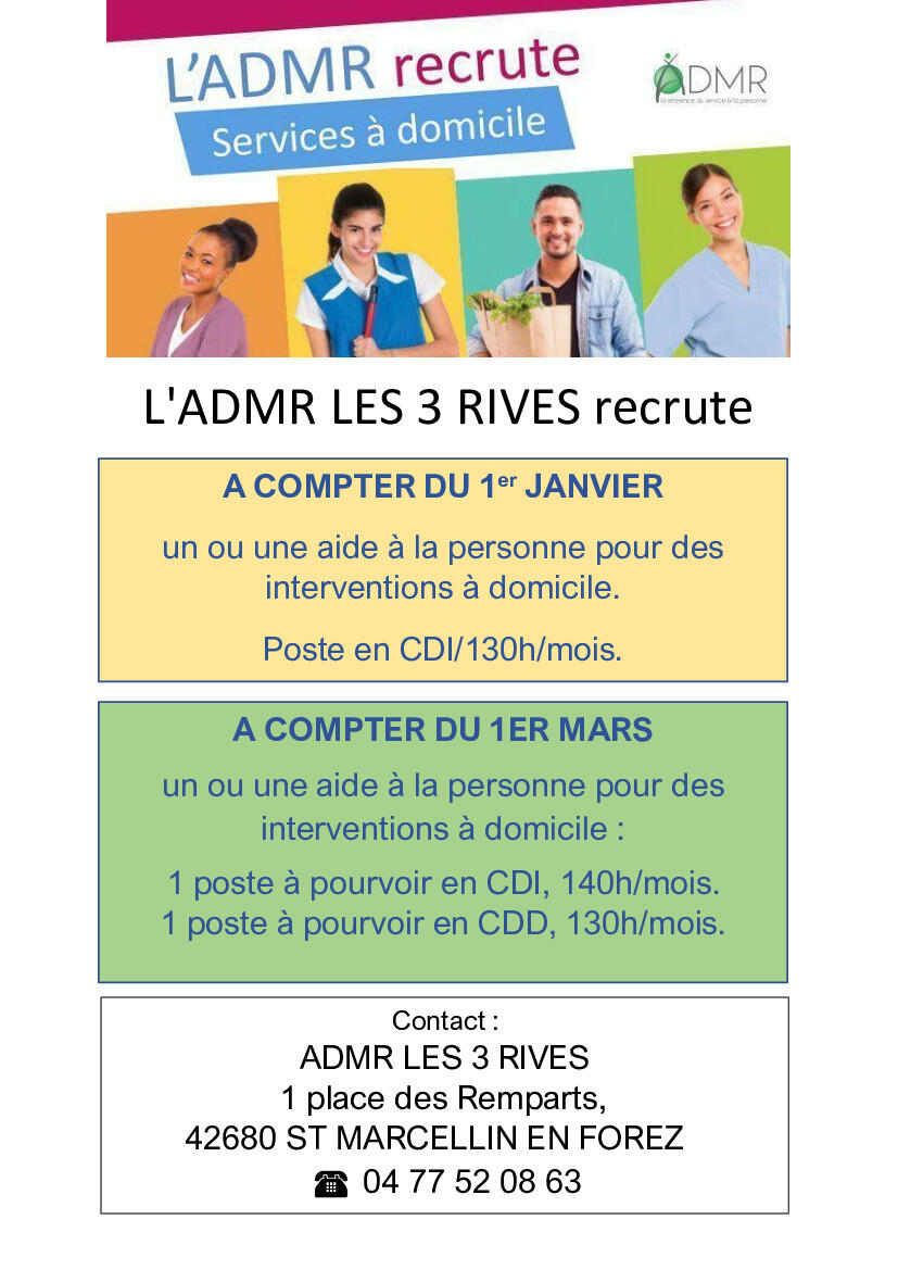 L'ADMR LES TROIS RIVES RECRUTE !