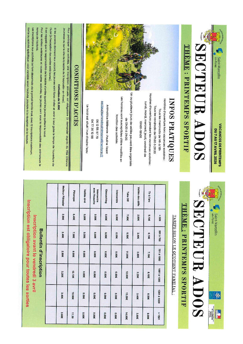 PROGRAMME SECTEUR « ADOS » VACANCES DE PRINTEMPS