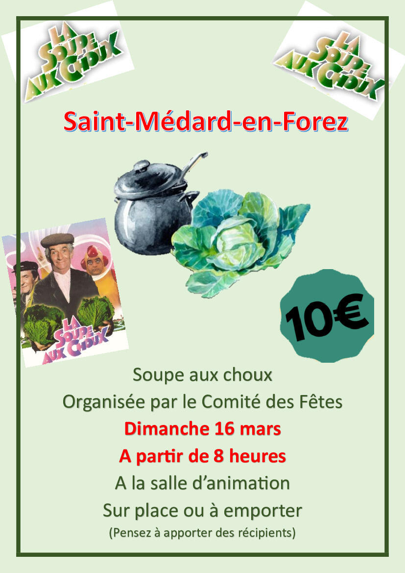 Soupe aux choux, dimanche 16 mars 01/03/2025 Organisée par le Comité des Fêtes Venez nombreux, on vous attend...