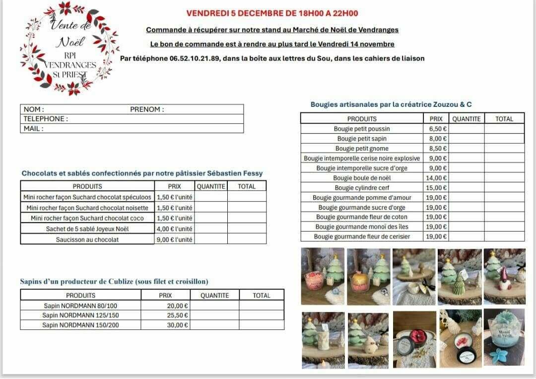 📍 Commandes à récupérer sur le stand du sou des écoles au Marché de Noël de Vendranges