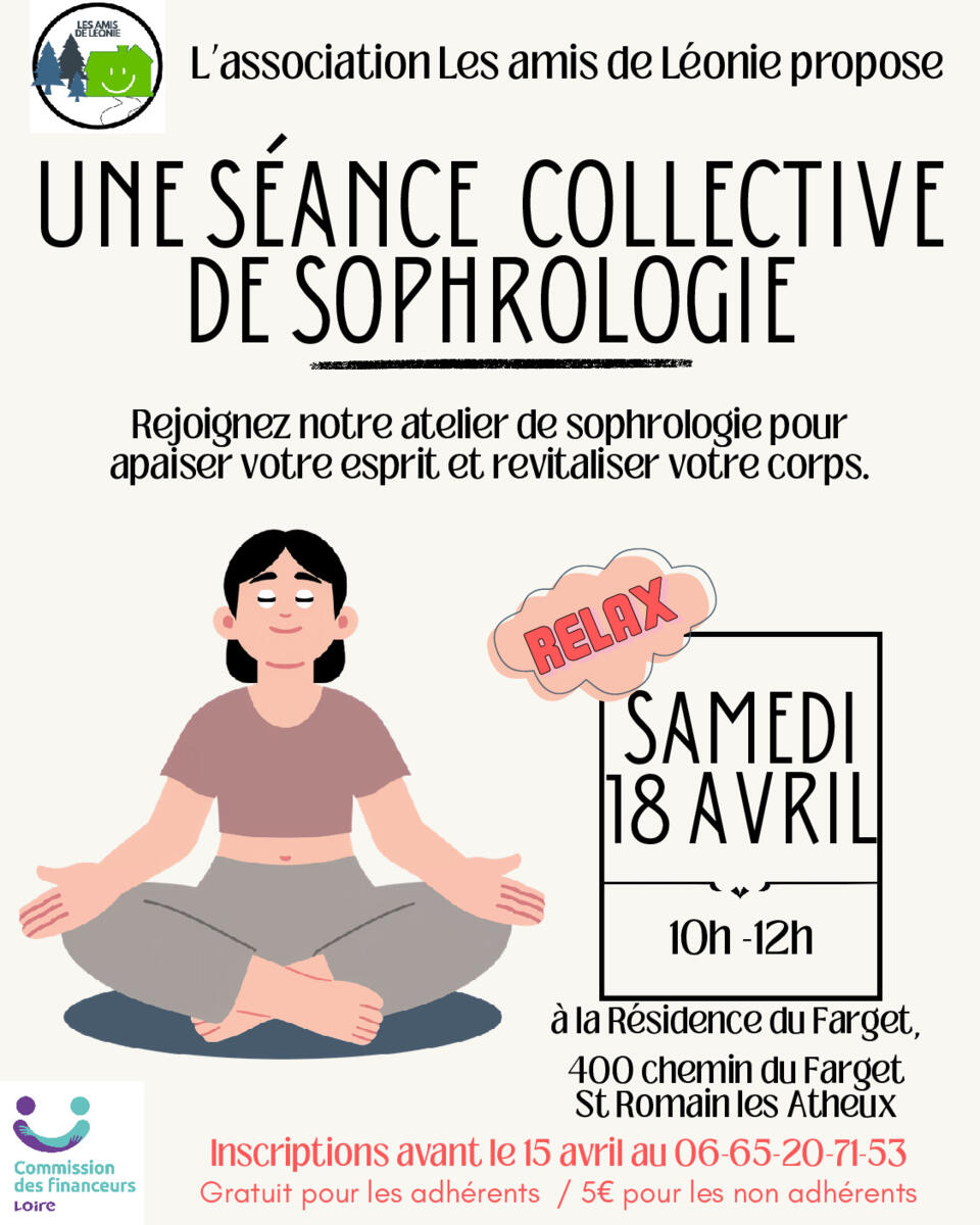 Les Amis de Léonie 13/04/2026 Séance Collective de Sophrologie Samedi 18 avril 10h-12h Source : Mairie de Saint-Romain-les-Atheux