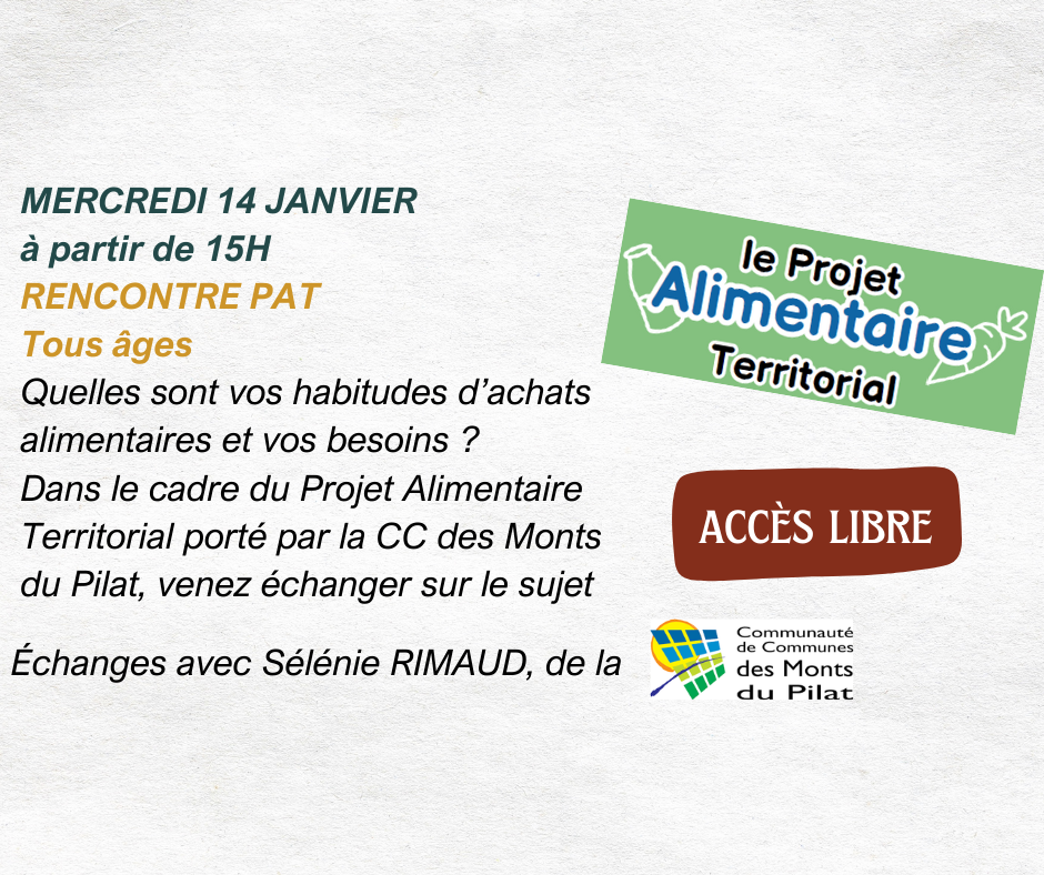 - demain mercredi, la Communauté de Communes des Monts du Pilat vient dès 15h pour échanger sur le Projet Alimentaire Territorial