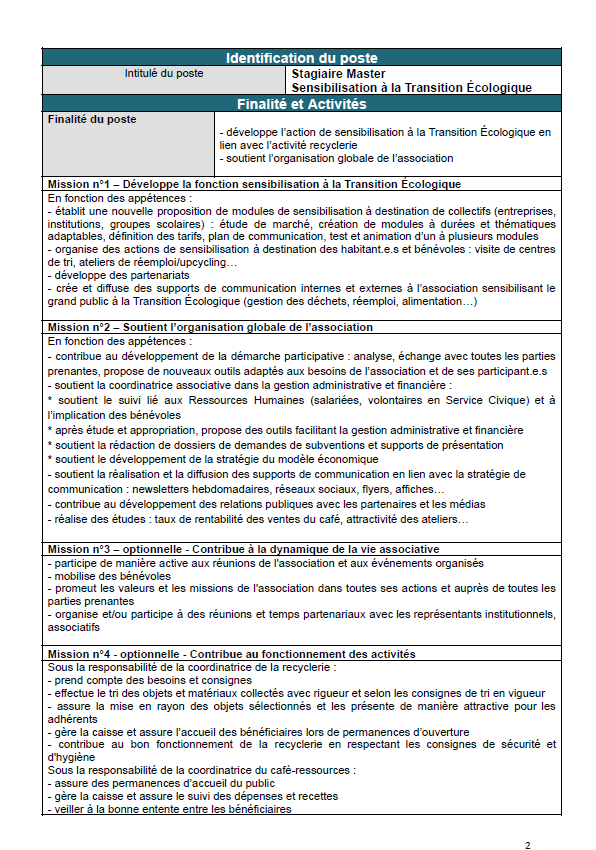 â»La mission de stage est axĂ©e particuliĂšrement sur la âSensibilisation Ă la Transition Ăcologiqueâ. Elle pourra Ă©voluer selon lâavancĂ©e du projet et le profil du.de la stagiaire.