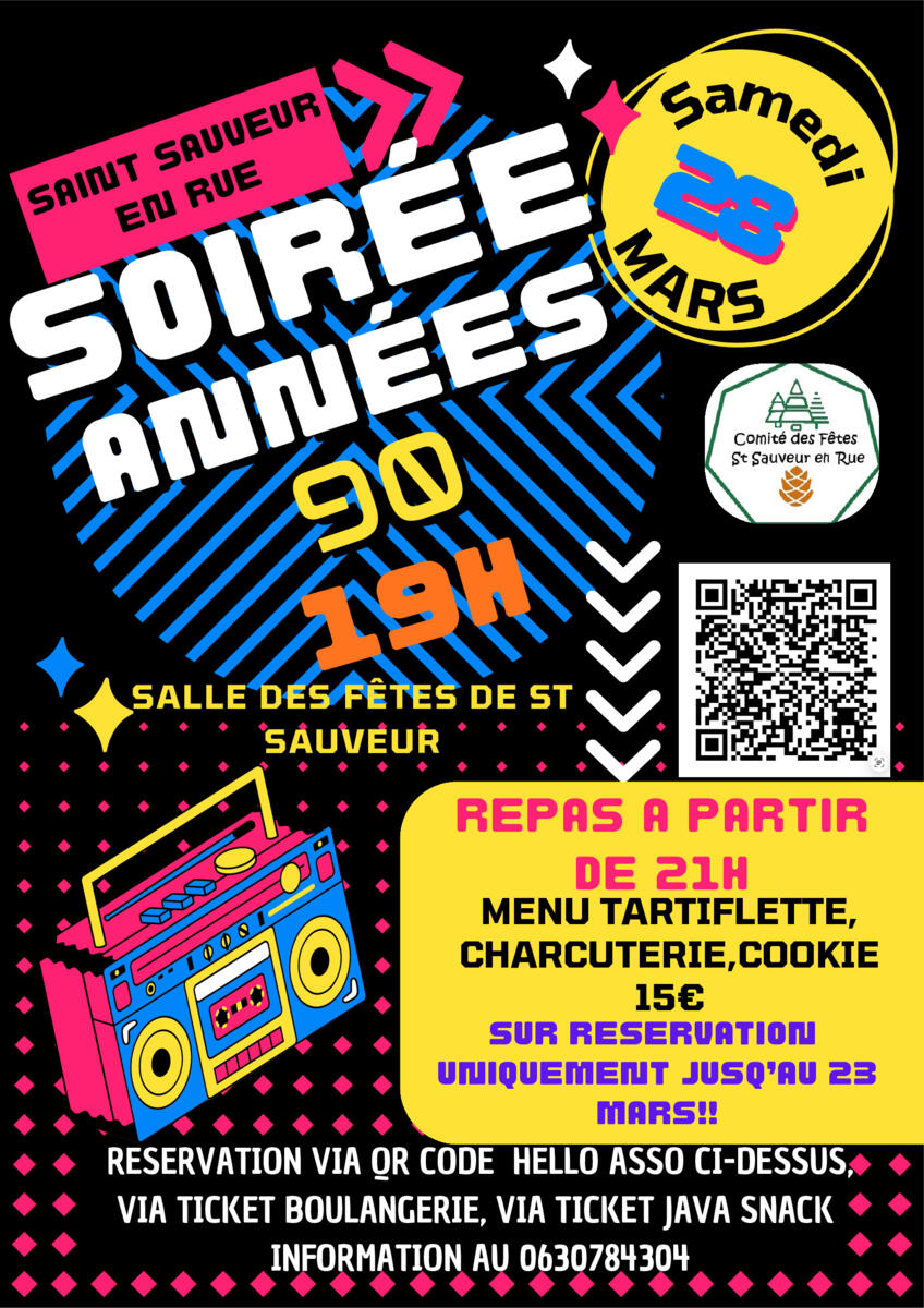 Soirée année 90 le samedi 28 mars