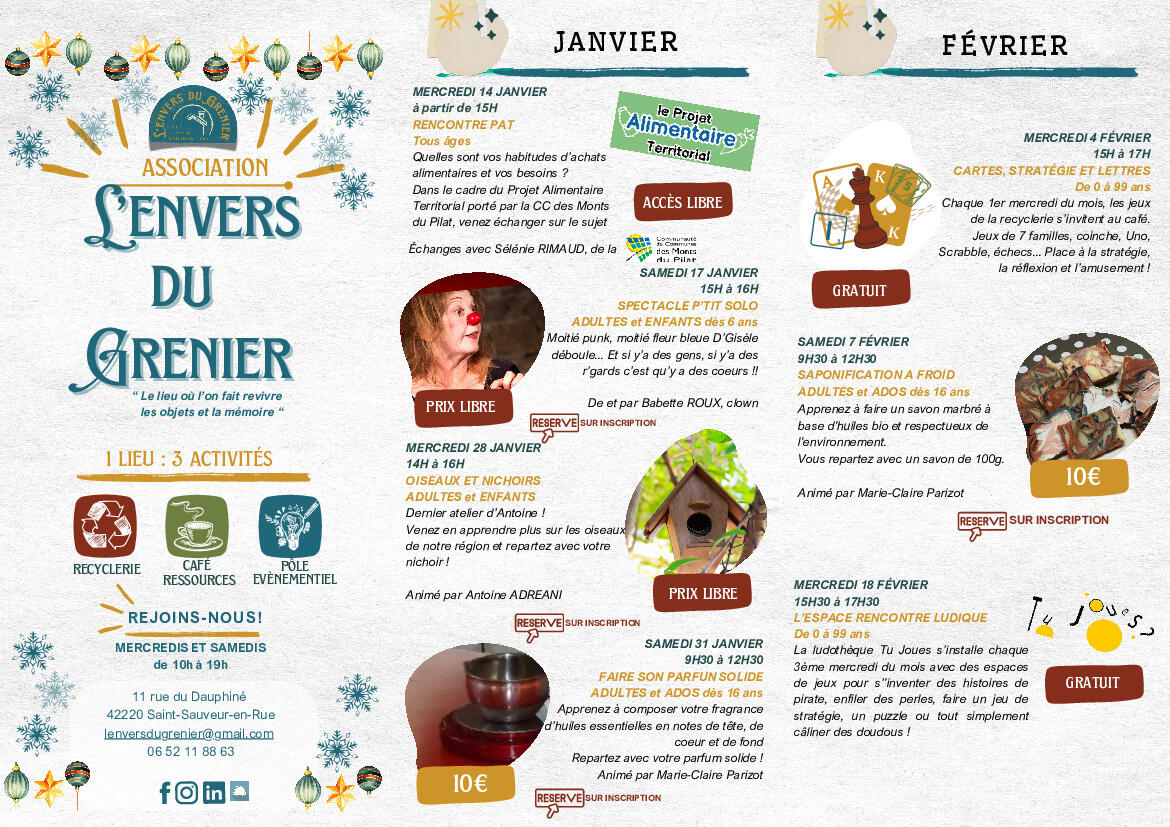 Programme De L'envers Du Grenier 18/12/2025 Vous trouverez ci-dessous le programme de janvier et février 2026.