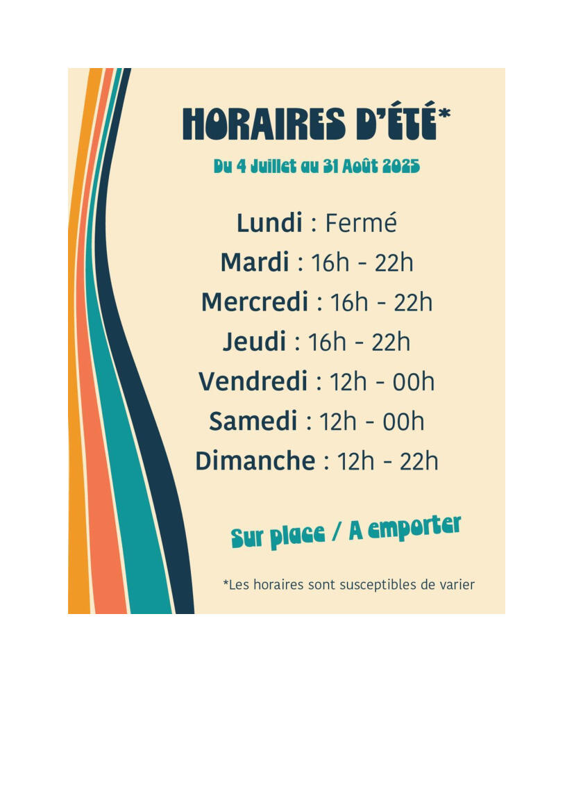 HORAIRES D'ÉTÉ DU JAVA SNACK AU CAMPING LES REGNIERES 27/07/2025 Horaires d'été du 4 juillet au 31 août 2025