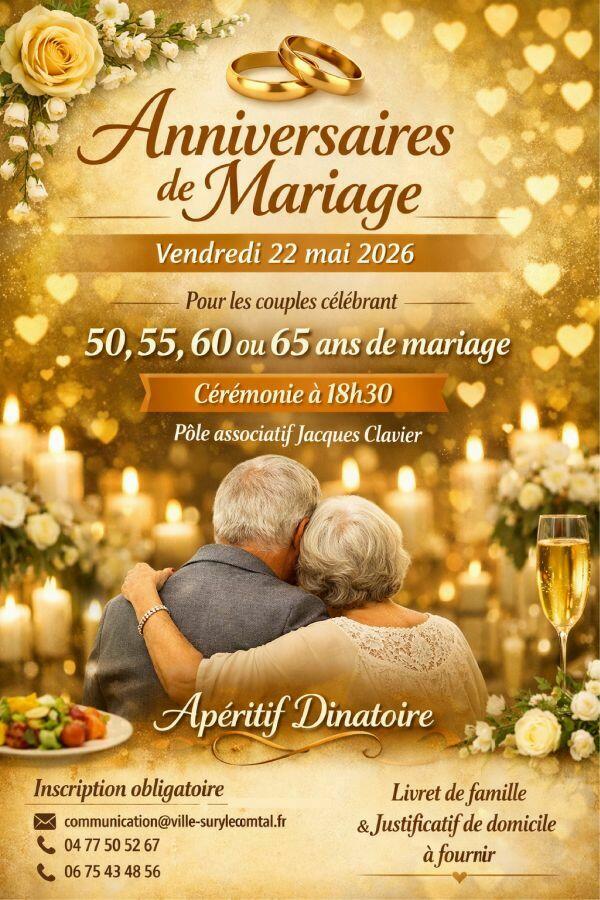 Anniversaires de mariage – Vendredi 22 mai 2026