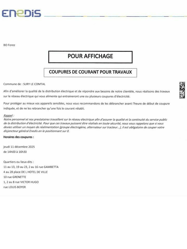 Coupure électricité ENEDIS 11 décembre 2025 - Centre Ville