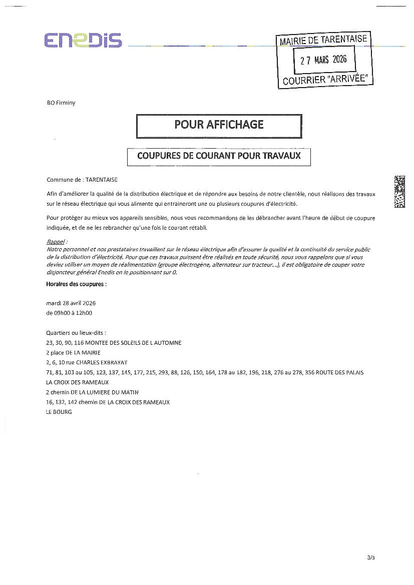 coupure électricité programmée le 28/04/2026 sur Tarentaise