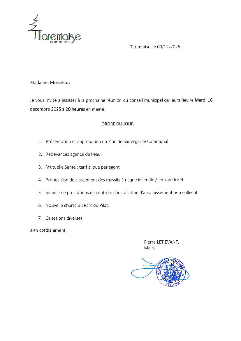 Conseil Municipal 16/12/2025 : Ordre du jour