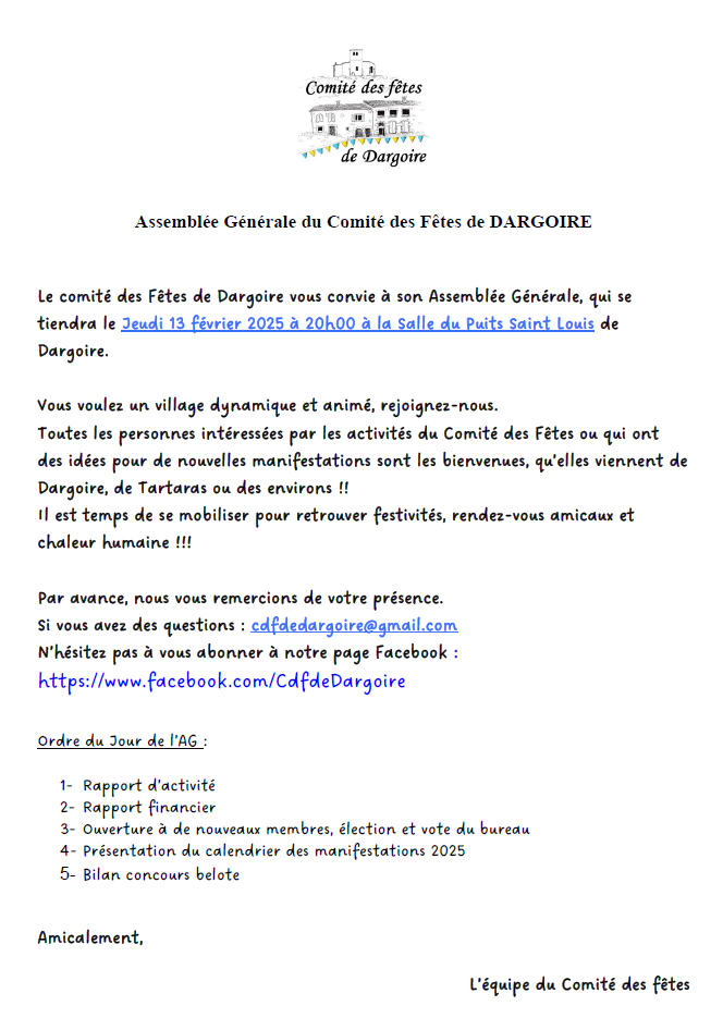 / Assemblée générale du Comité des fêtes de Dargoire