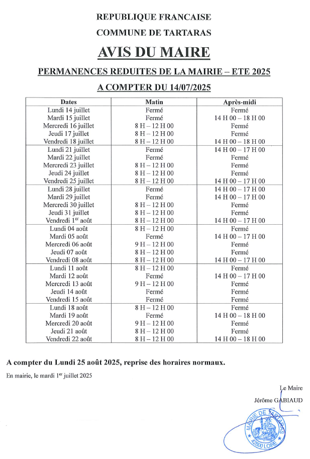 Ouverture Mairie - été 2025