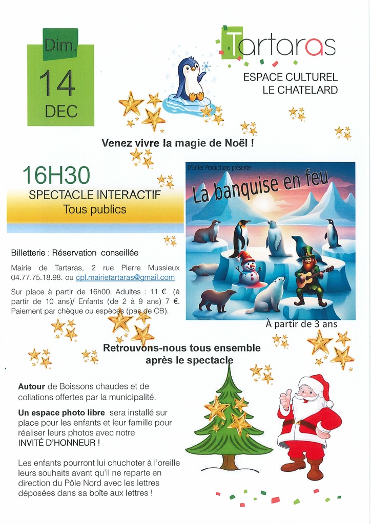 Spectacle de Noël ! 05/12/2025 Spectacle de Noël : "La banquise en feu" Dimanche 14 décembre 2025 16h30