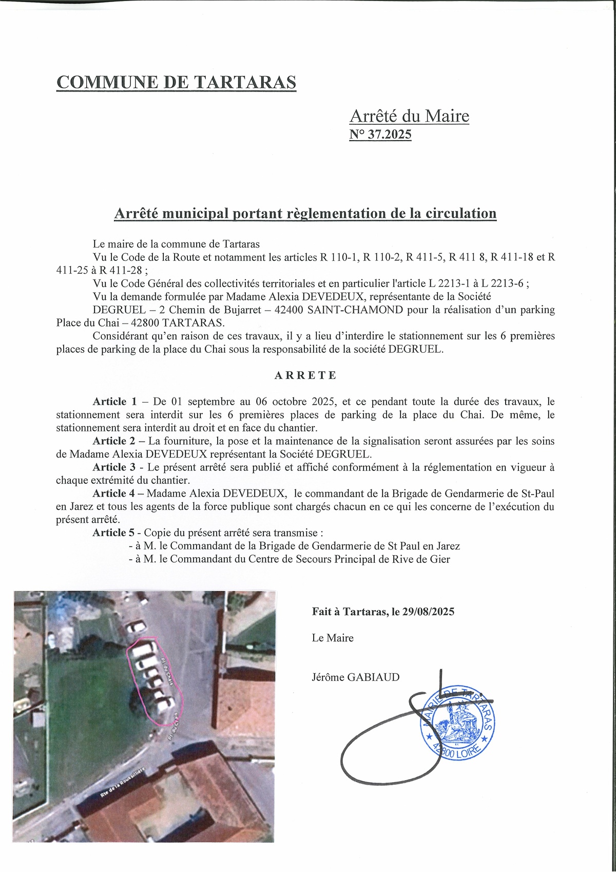 Nous vous remercions de ne pas stationner sur les 6 premières places de parking de la Place du Chai, comme indiqué sur la photo jointe.