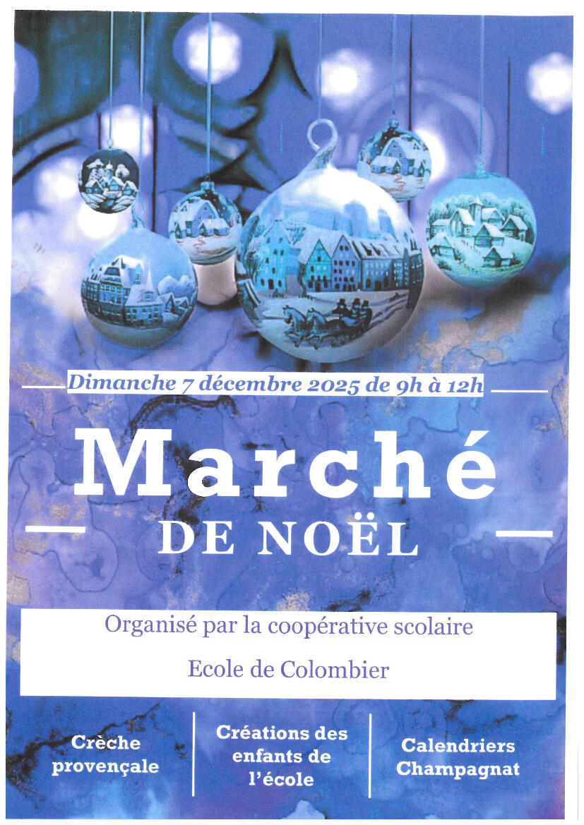 Marché De Noël De Colombier Le Dimanche 7 Décembre 28/11/2025 Le marché de Noël de l'école de Colombier aura lieu le dimanche 7 décembre en matinée, en même temps que la vente de boudins /saucisses et le petit marché sur la place de l'église.