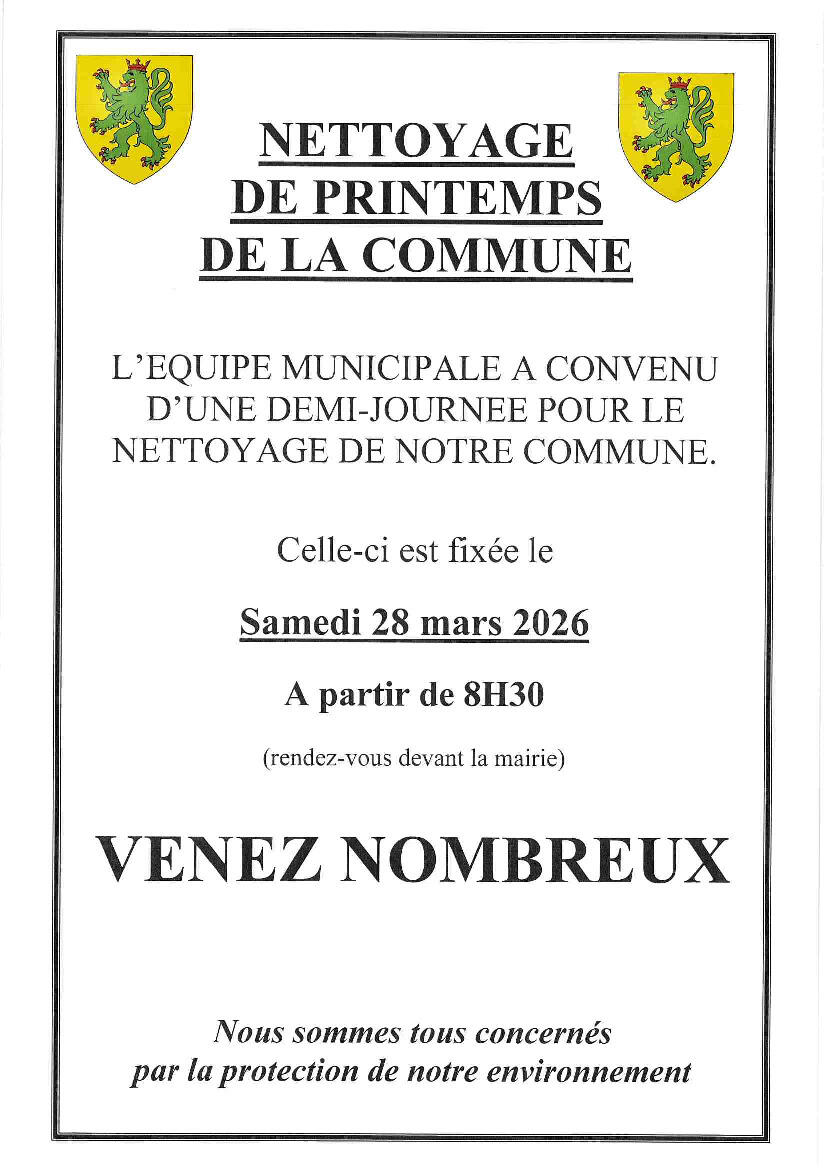 Demi journée de nettoyage le 28 mars matin.