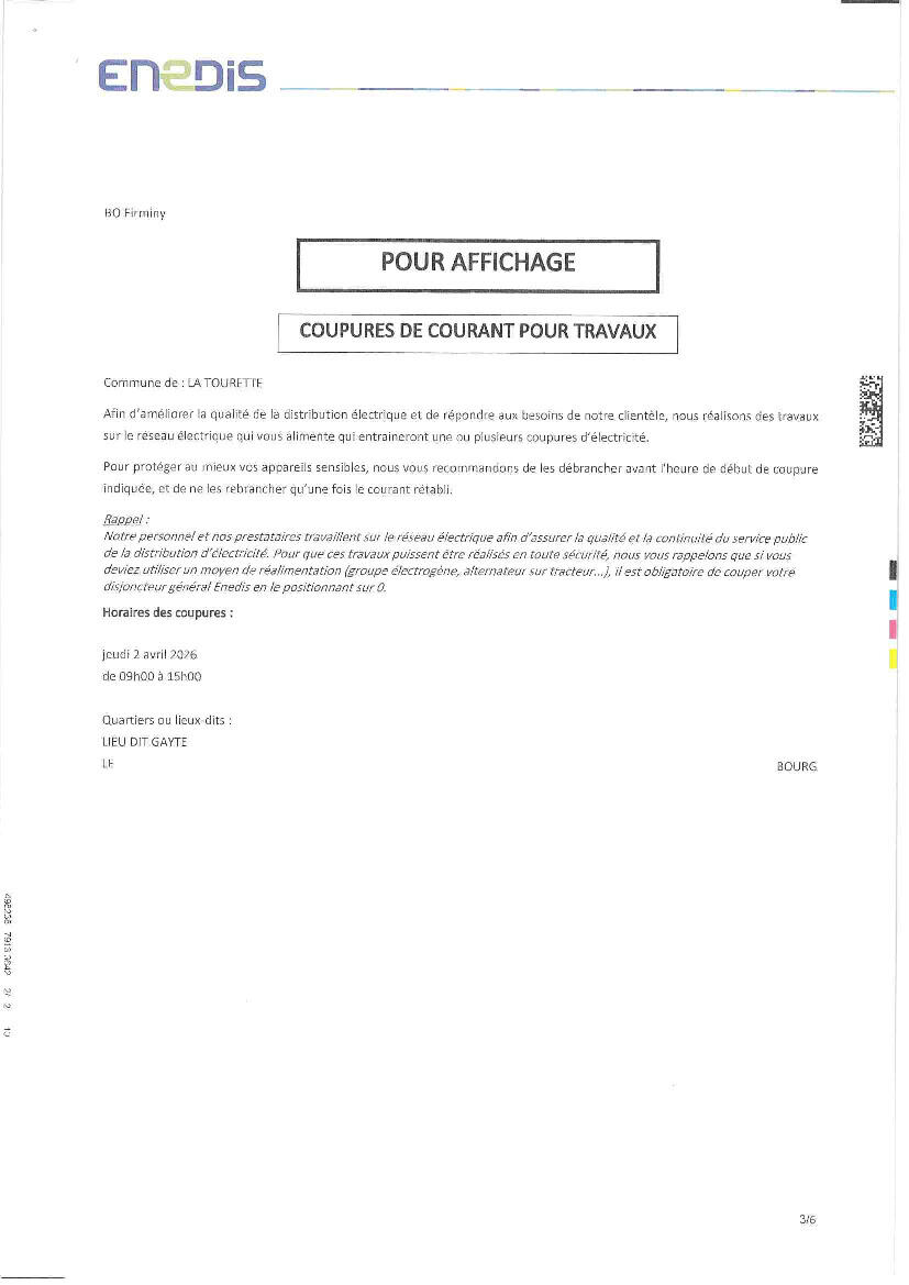 RAPPEL: Coupure de courant aujourd'hui 2 avril.