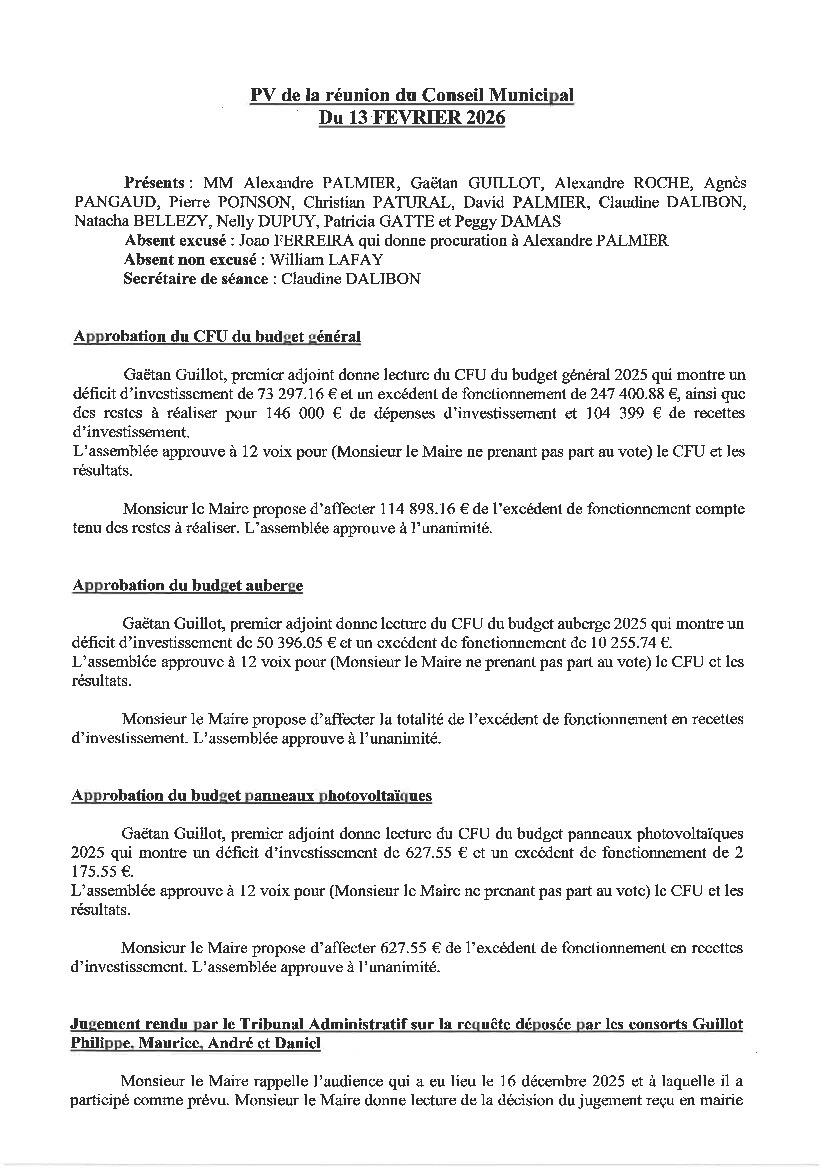 PV du Conseil Municipal du 13 février 2026