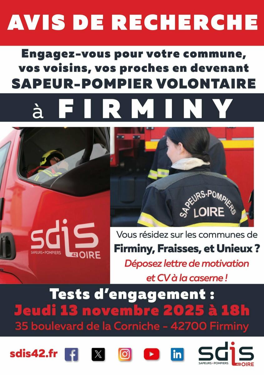 🚒 Avis de recherche – Sapeurs-pompiers volontaires Firminy
