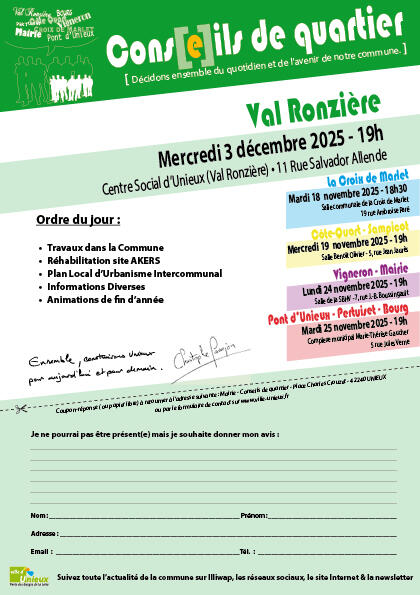 📅 Conseils de Quartier à Unieux : Val Ronzière