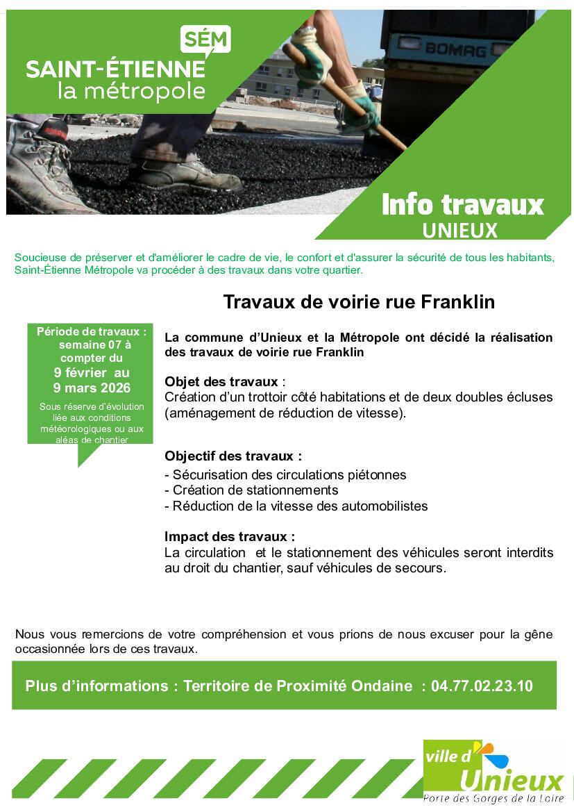 🚧 Travaux de voirie – Rue Franklin 🚧