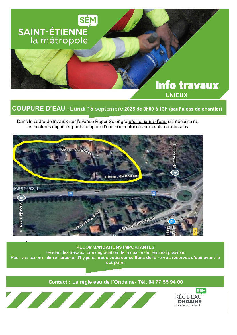 📞 Pour toute information : Régie eau de l’Ondaine – 04 77 55 94 00