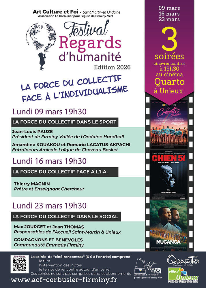 3 soirées ciné-rencontres au cinéma Quarto, organisées par « Art Culture et Foi » de Saint-Martin-en-Ondaine.