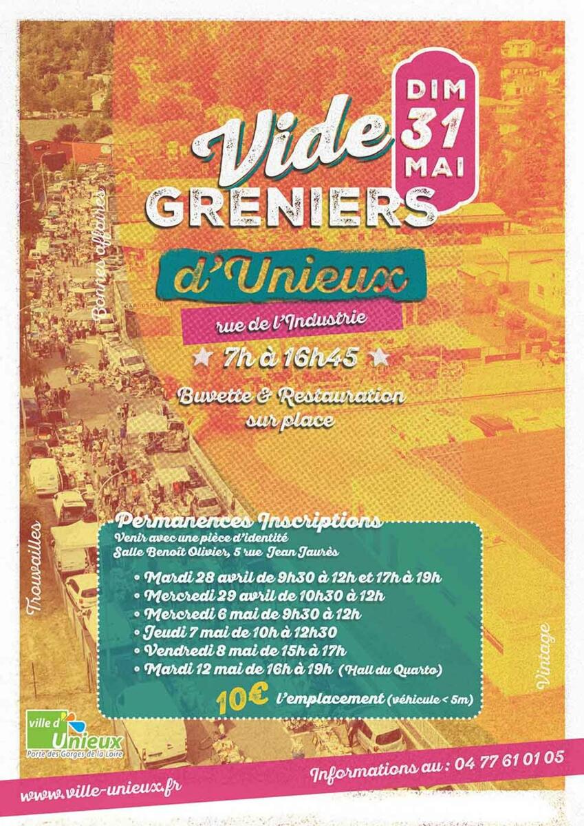 Le traditionnel vide-greniers de la Ville se tiendra le dimanche 31 mai, rue de l’Industrie, de 7h à 16h45.