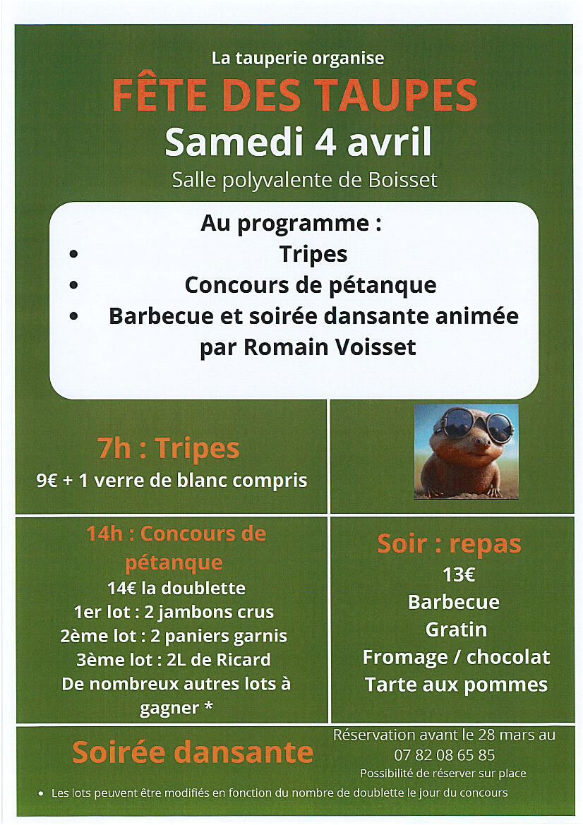 Samedi 04 avril "FETE DES TAUPES" à Boisset